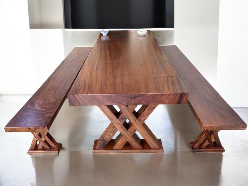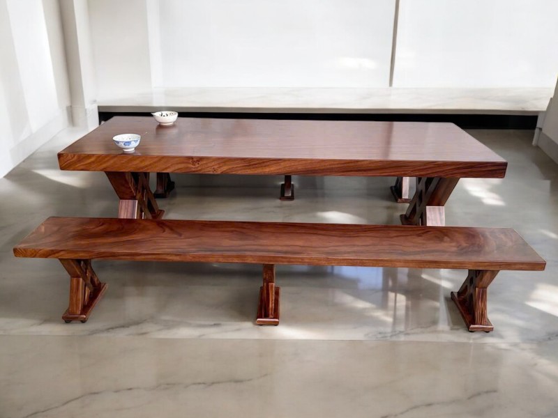Bộ bàn này không chỉ là sản phẩm nội thất, mà còn là biểu tượng của sự sang trọng và phong cách sống hiện đại. Sự hòa quyện giữa gỗ tự nhiên nguyên bản và thiết kế kim loại tinh tế tạo nên kiệt tác vừa bền bỉ, vừa đầy tính nghệ thuật.