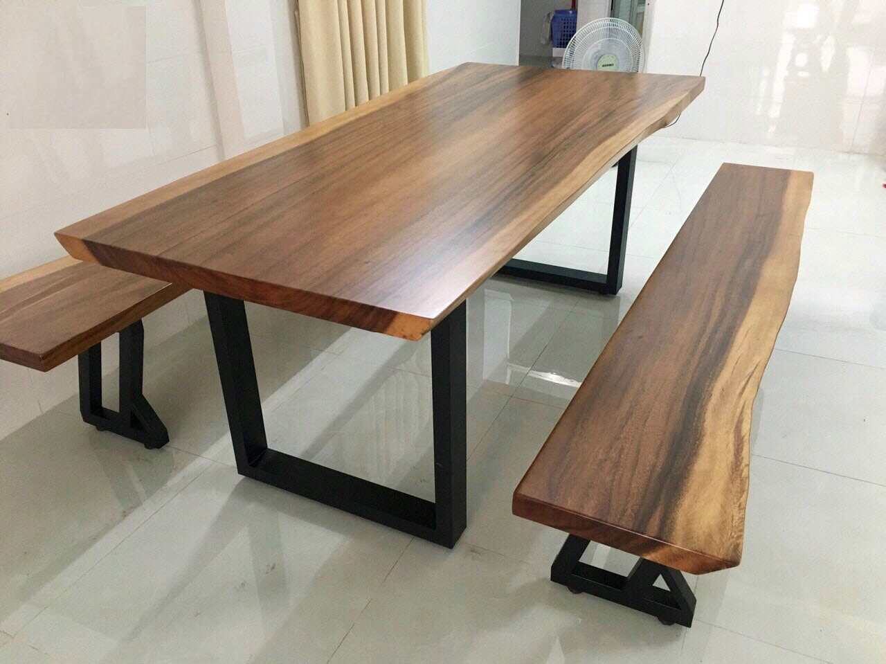 Bộ bàn ghế k3 gỗ me tây nguyên khối rộng 1m dày 15cm dài 250cm