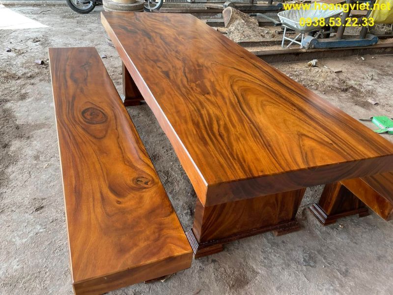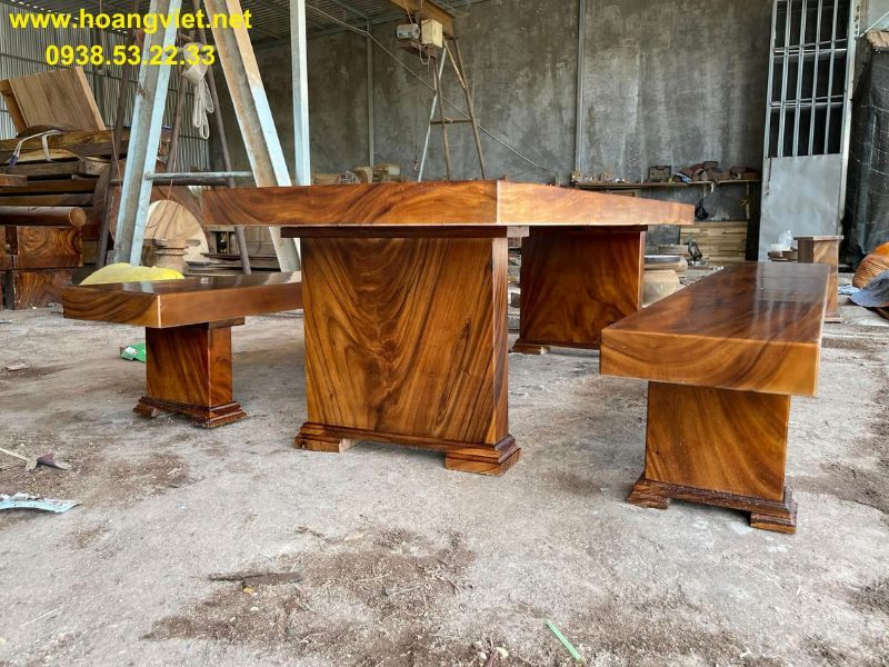 Bàn ghế k3 gỗ me tây (80-90)x12x250cm