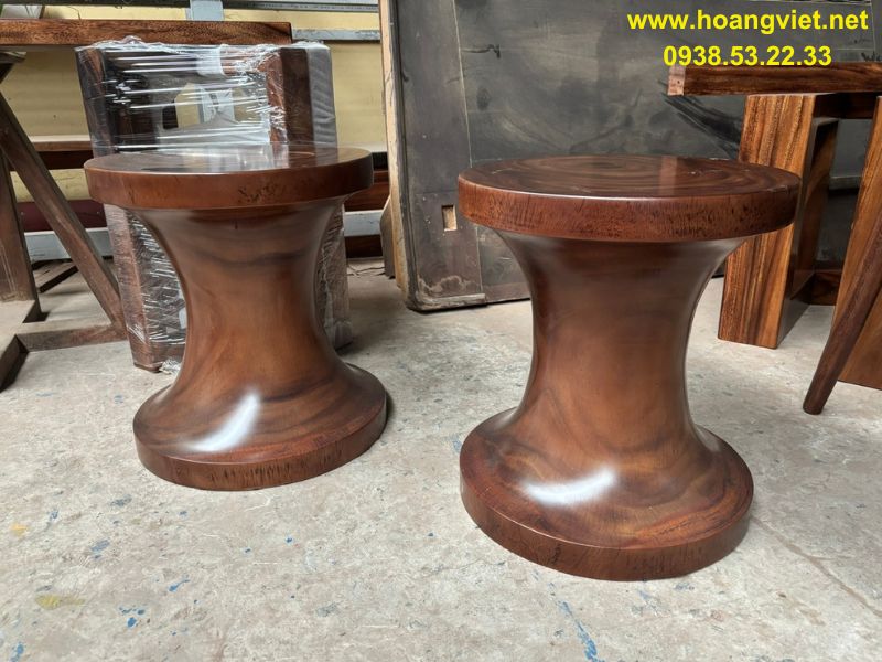 1.2) Đôn gỗ me tây tròn.
