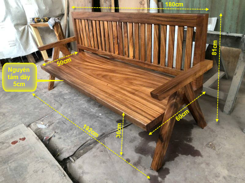 Ghế gỗ băng dài 2m2 rộng 40cm dày 5cm