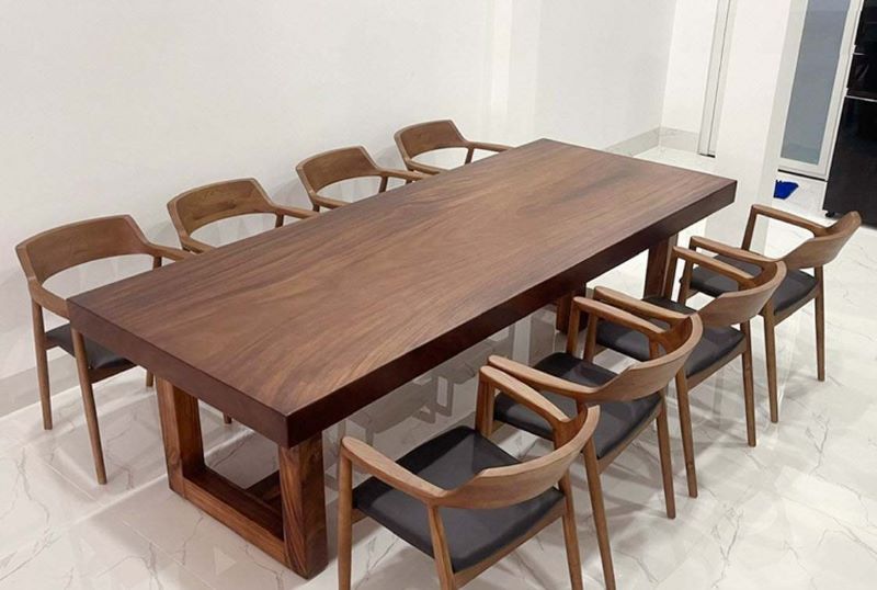 • Bàn ăn nguyên tấm cạnh thẳng kết hợp ghế hiro.