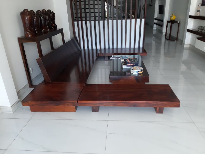 Ghế sofa gỗ me tây nguyên khối