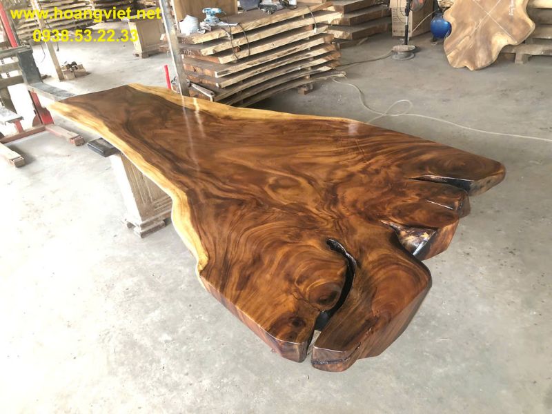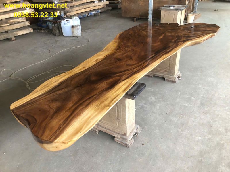 Mặt bàn gỗ me tây cạnh tự nhiên dài 3m9