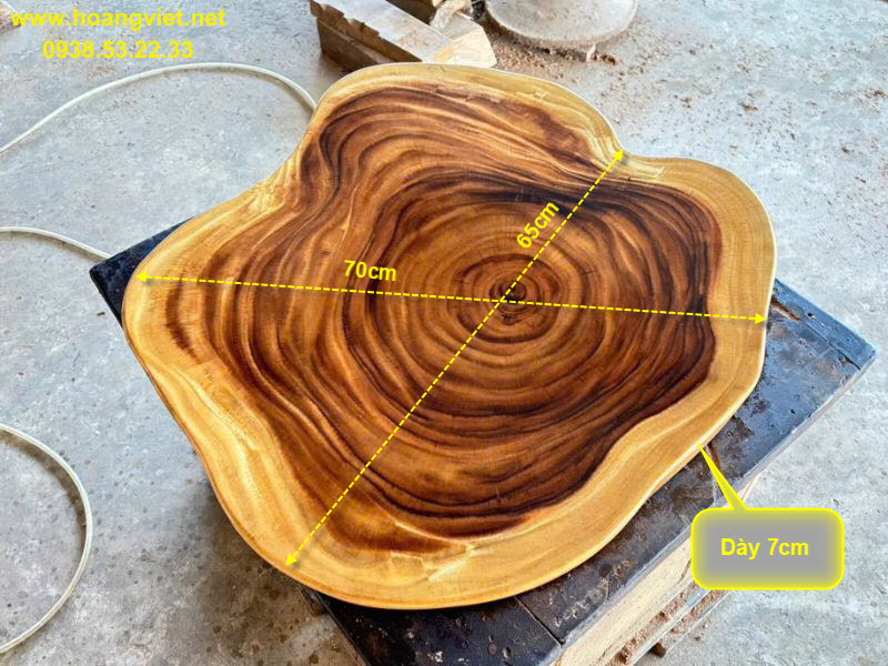 Bàn trà gỗ tròn đường kính 60cm dày 5cm