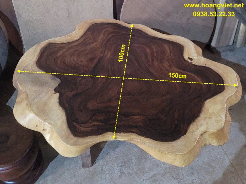 Bàn tròn đường kính 60cm dày 5cm.