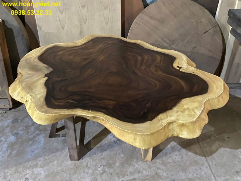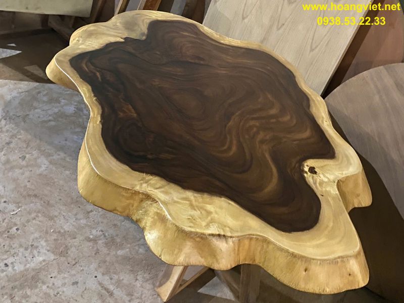 Bàn sofa đôi tròn tự nhiên gỗ me tây