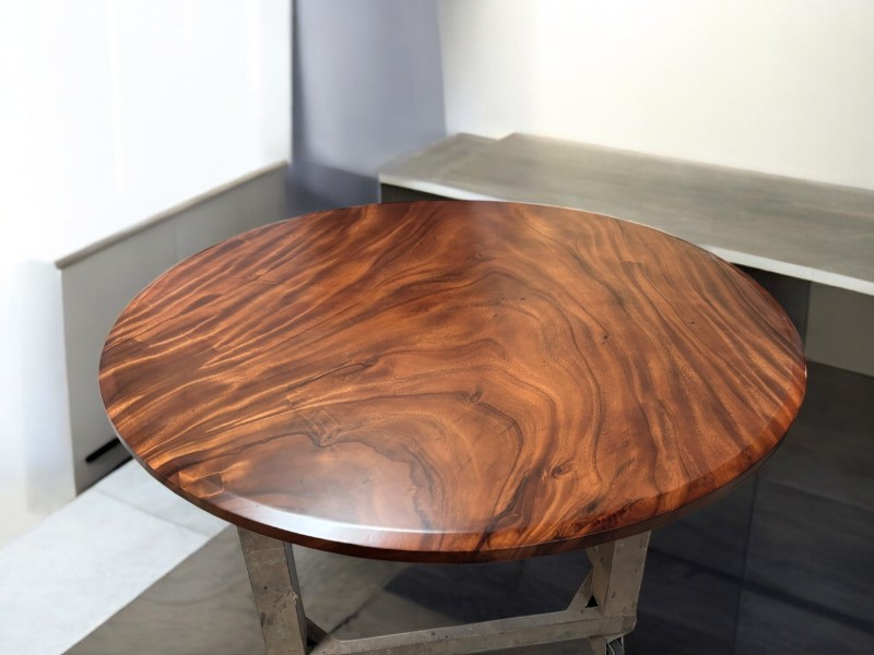 Mặt bàn tròn gỗ me tây nguyên tấm.