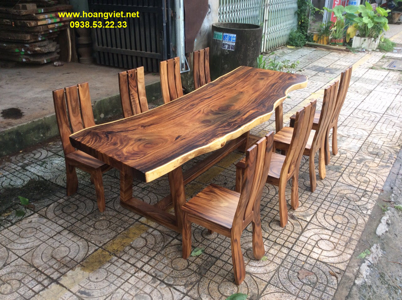 Bộ bàn ăn 8 ghế gỗ me tây nguyên tấm