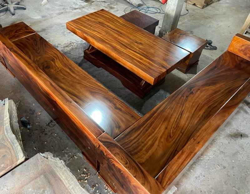 Tại công Hoàng Việt chúng tôi chuyên cung bàn ghế sofa phòng khách bằng gỗ me tây nguyên khối đã qua tẩm sấy đảm bảo chất lượng.