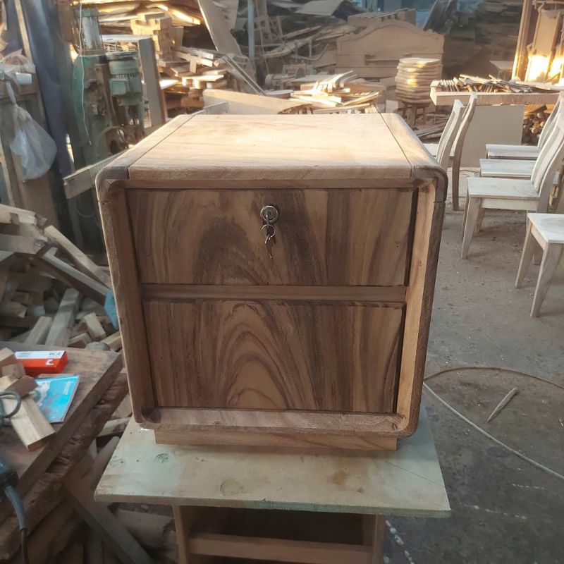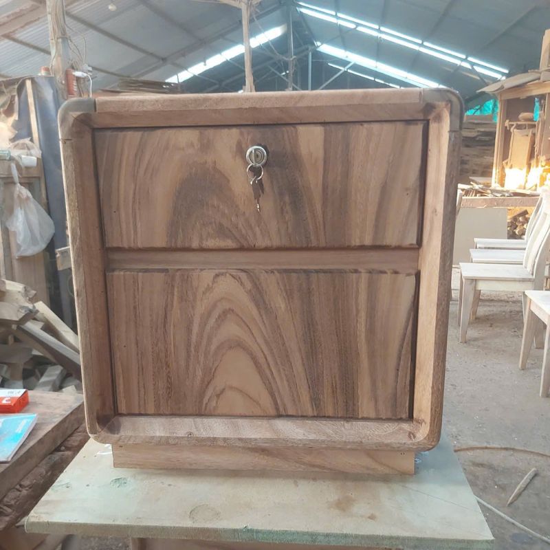 ♦ Thiết kế nhỏ gọn, thanh lịch từ gỗ me tây tự nhiên giúp tủ đầu giường nổi bật với vẻ đẹp mộc mạc, gần gũi nhưng vẫn đầy tinh tế. Mặt tủ rộng vừa đủ để đặt đèn ngủ, bình hoa hoặc phụ kiện trang trí, trong khi các ngăn kéo bên dưới giúp bạn sắp xếp đồ đạc ngăn nắp, gọn gàng.
