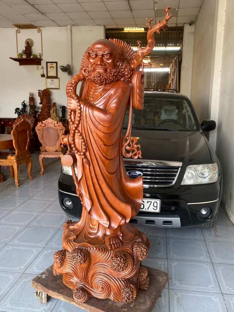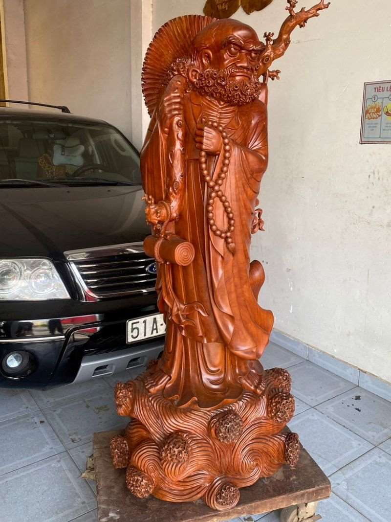 Tượng đat ma gỗ gõ đỏ cao 168cm.