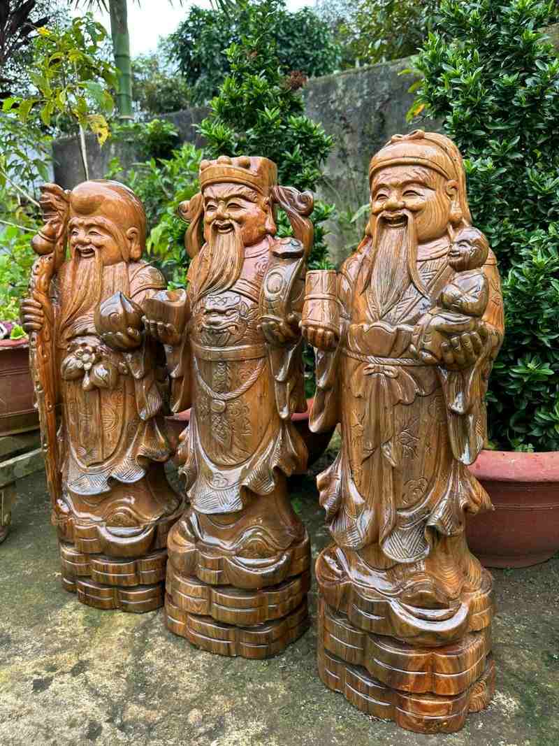 Phúc lộc thọ gỗ thủy tùng cao 98cm rộng 35cm